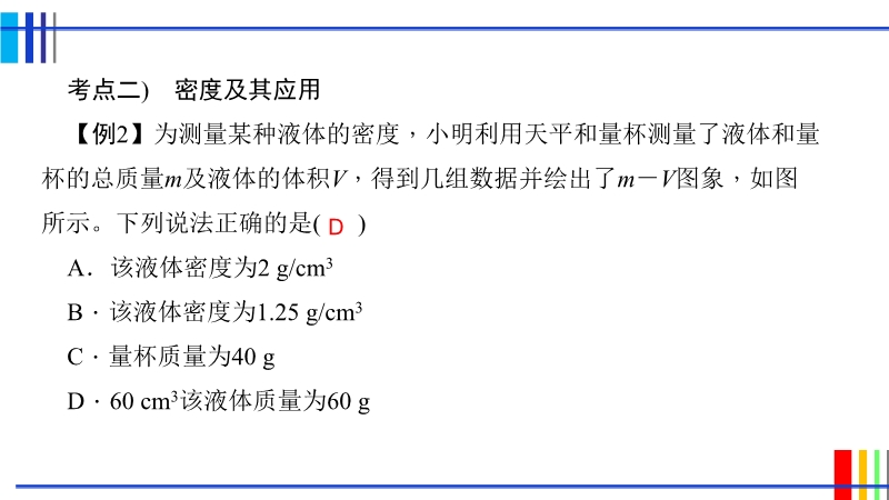 【内容简介】2018年中考物理专题课件:《第6章 质量与密度》PPT课件,课件有48张幻灯片,课件第一个环节是考例精析,根据考点展示中考试题,通过例题的分析,总结知识点和解题的方法,提高知识的运用能力。第二环节是实验突破,再现教材实验,回顾实验的设计方案,同时对实验进行拓展延伸;最后环节是备考集训,本环节主要是展示中考试题,分为基础题和提高题,课件设计科学合理。