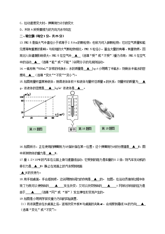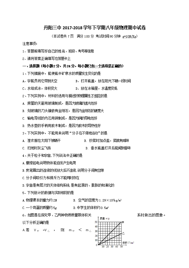 江苏省丹阳市第三中学2017-2018学年八年级下学期期中考试物理试题
