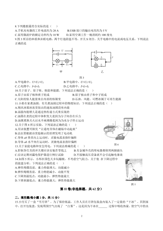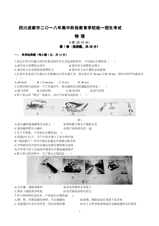 四川省成都市2018年中考物理试题(PDF版,无答案)