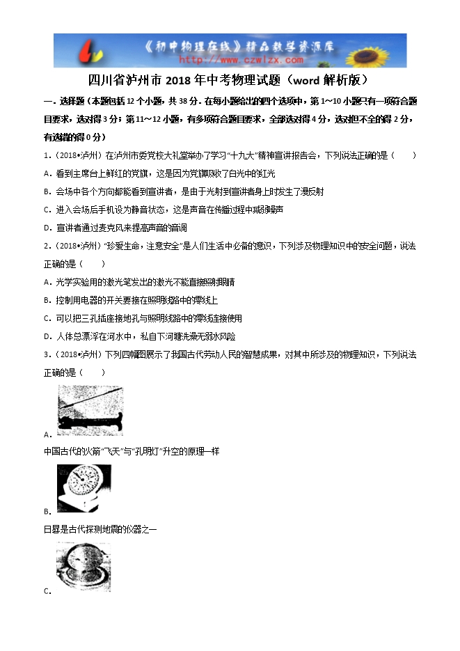 1.(2018•泸州)在泸州市委党校大礼堂举办了学习“十九大”精神宣讲报告会,下列说法正确的是( )