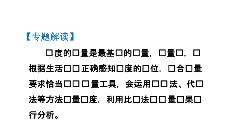 【内容简介】人教版:《第一单元 机械运动》专题训练,课件61张幻灯片,分成四个专题:巧选参照物 相对静止、长度的测量和速度的计算等