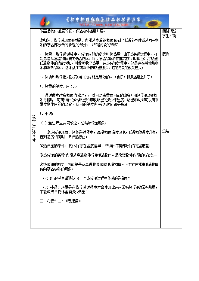 1.热传递:列举事例说明热传递的现象。并引导学生概括热传递共同特点: