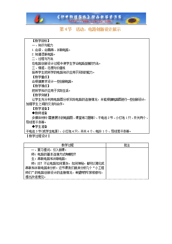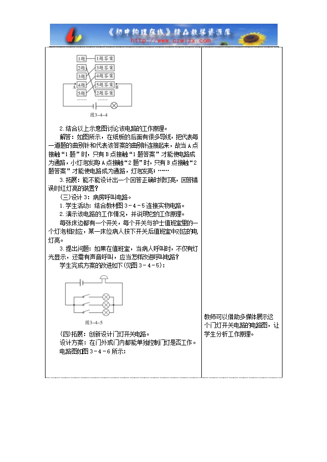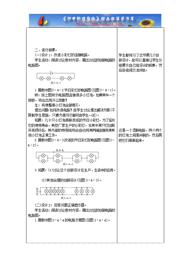 让学生充分利用电路图分析实际电路的连接情况,并能根据电路图进行一些创新设计,加强学生之间的交流与合作。