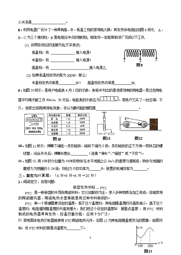 7、用“220V,800W”的电热壶烧水.若不考虑能量损失.当把它接入110V的电源上时,在32分钟内可将一壶水烧开,若将该壶接在220V电源上时,烧开同样一壶水所用时间为( )