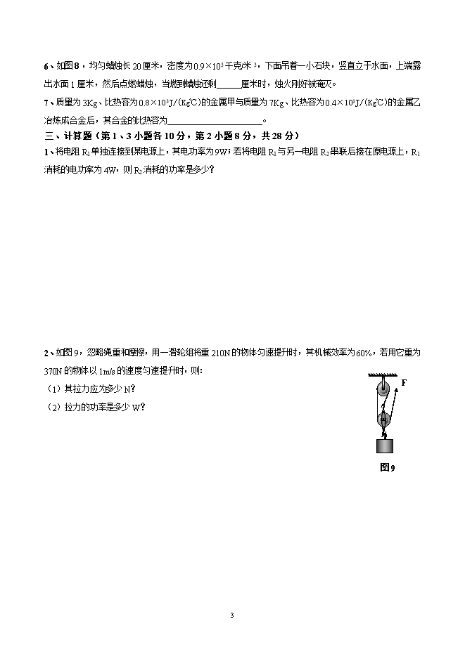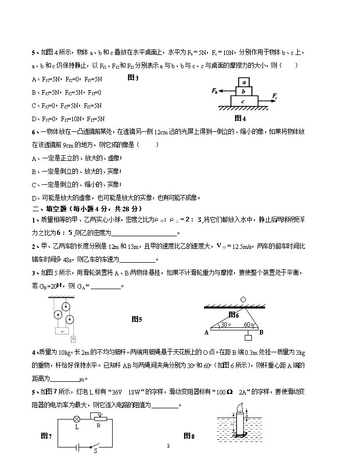 - 5579蚌埠二中2008年自主招生考试物理素质测试题及答案