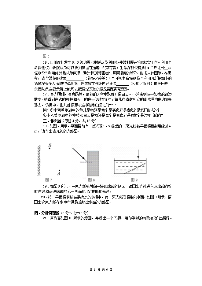 6、如图3所示,一束光线斜射入容器中,在P处形成一光斑,在向容器里逐渐加满水的过程中,光斑将( )