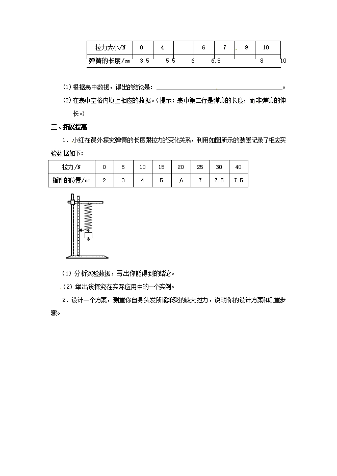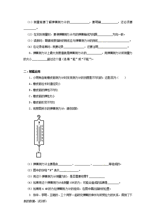 【教学重点】对弹力概念的理解,理解弹簧测力计的原理,弹簧测力计的正确使用。
