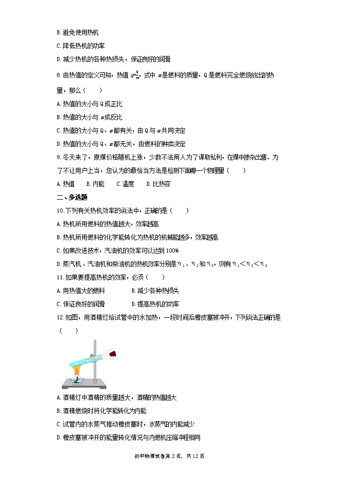 8.由热值的定义可知,热值q=,式中m是燃料的质量,Q是燃料完全燃烧放出的热量,那么( )