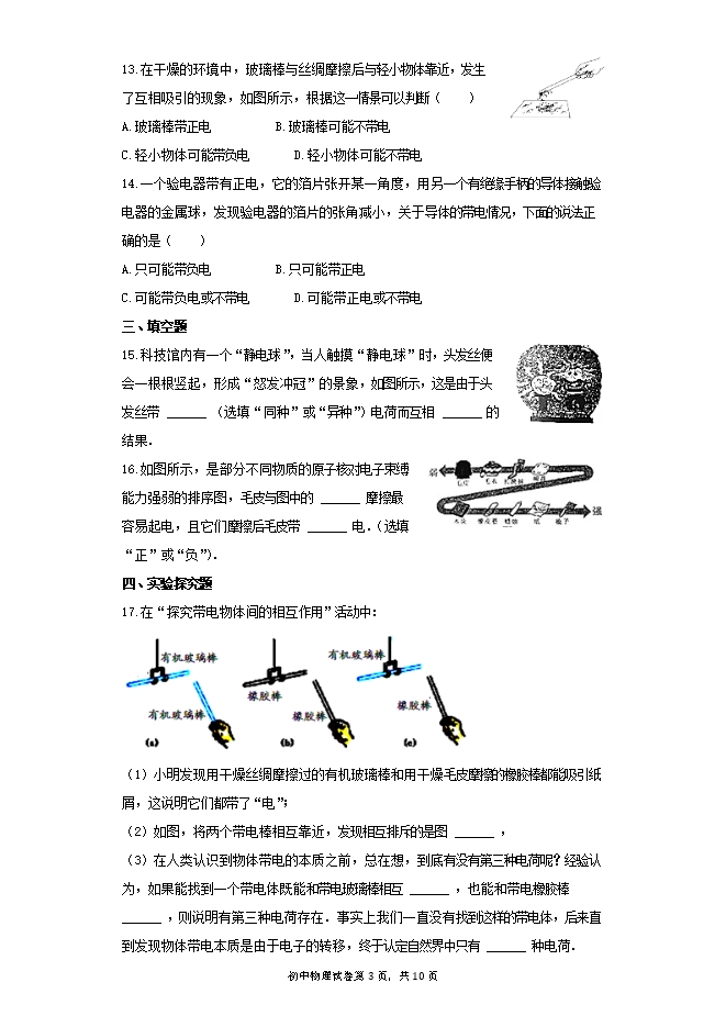 10.下列现象中,属于摩擦起电的是( )