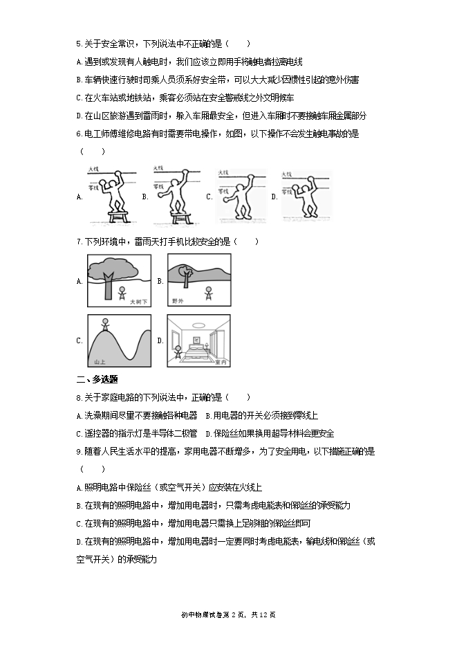 5.关于安全常识,下列说法中不正确的是( )