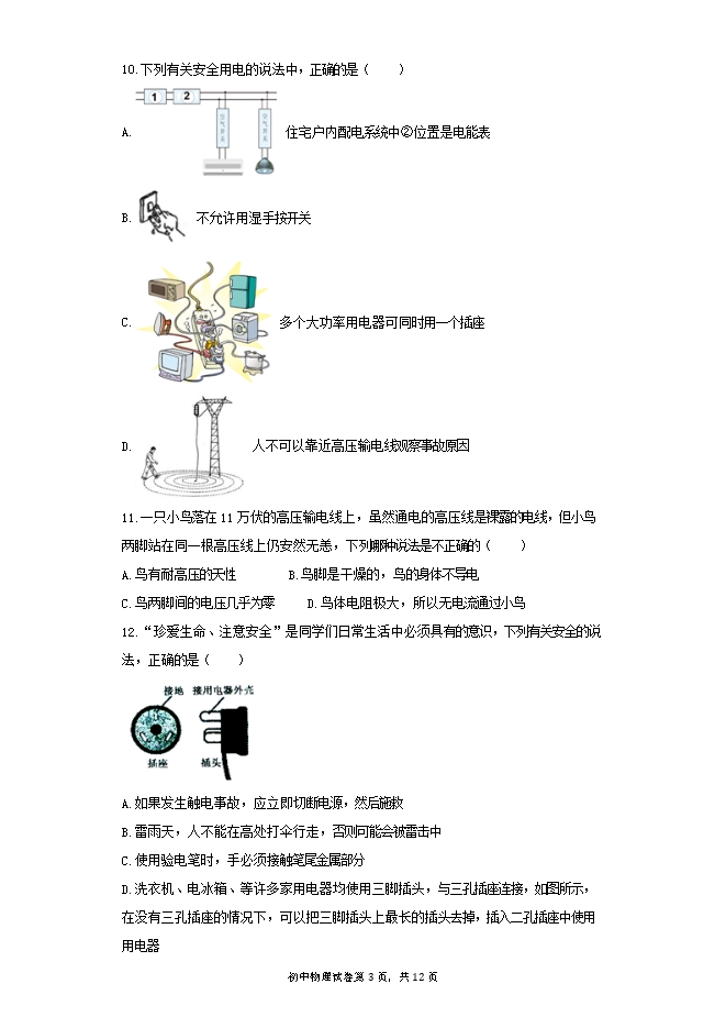 9.随着人民生活水平的提高,家用电器不断增多,为了安全用电,以下措施正确的是( )