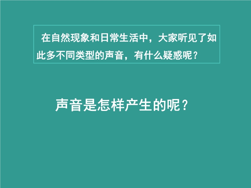 【内容简介】人教版八年级上《2.1 声音的产生与传播 》PPT+动画+视频,共有23张幻灯片。主要引导学生通过动手实验认识了声音是怎样产生的,课件还引导学生探究了声音在固体、液体、气体中的传播,探究了声音传播的条件等,让学生了解了声音在不同物质中的传播速度等。