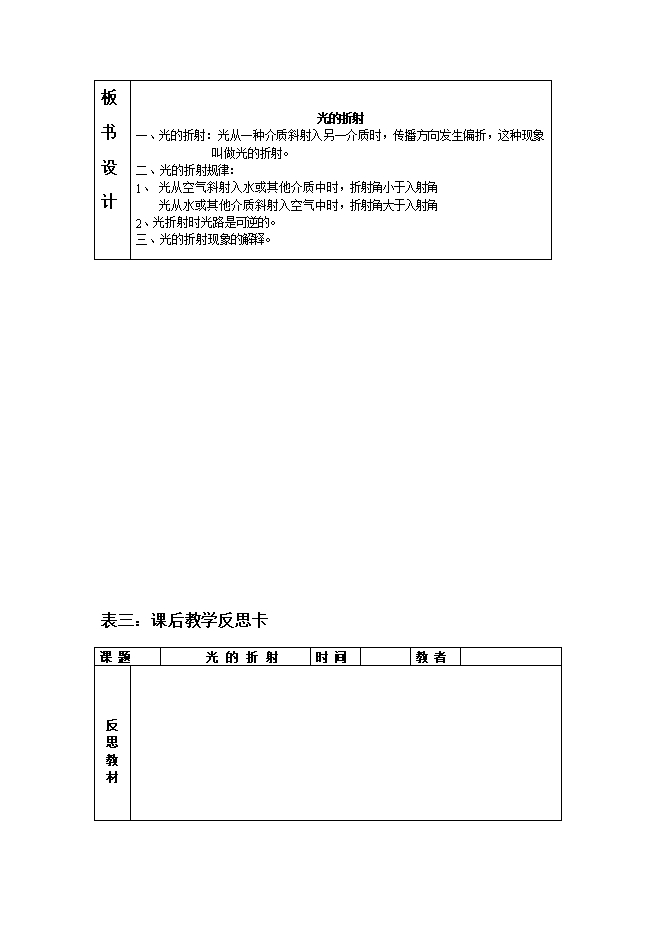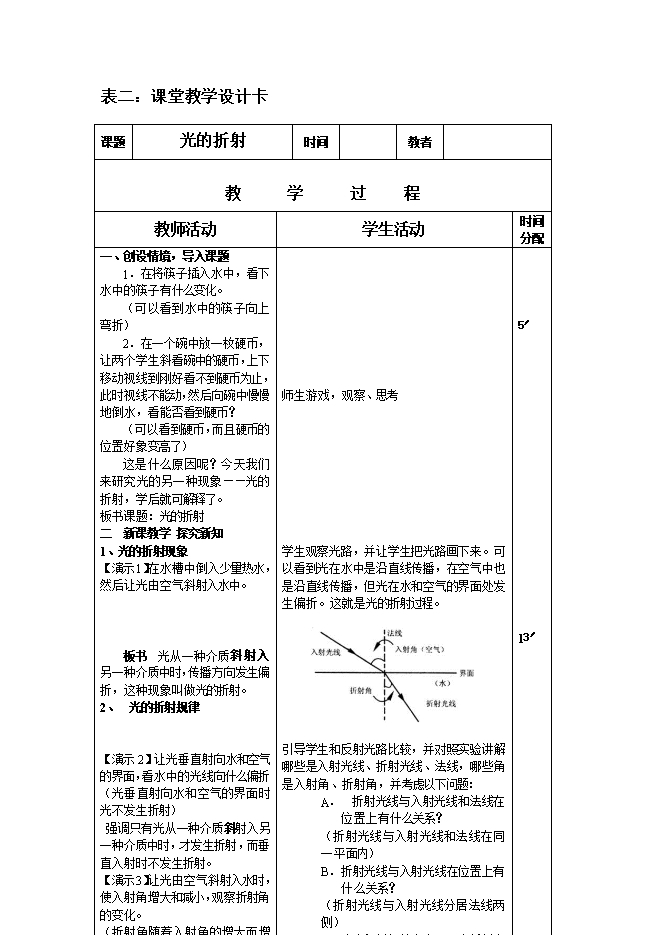 2018年秋人教版八年级物理上册《4.4光的折射》教学设计