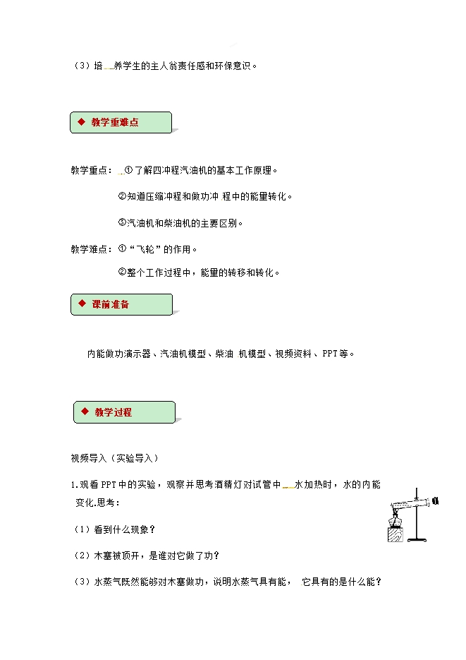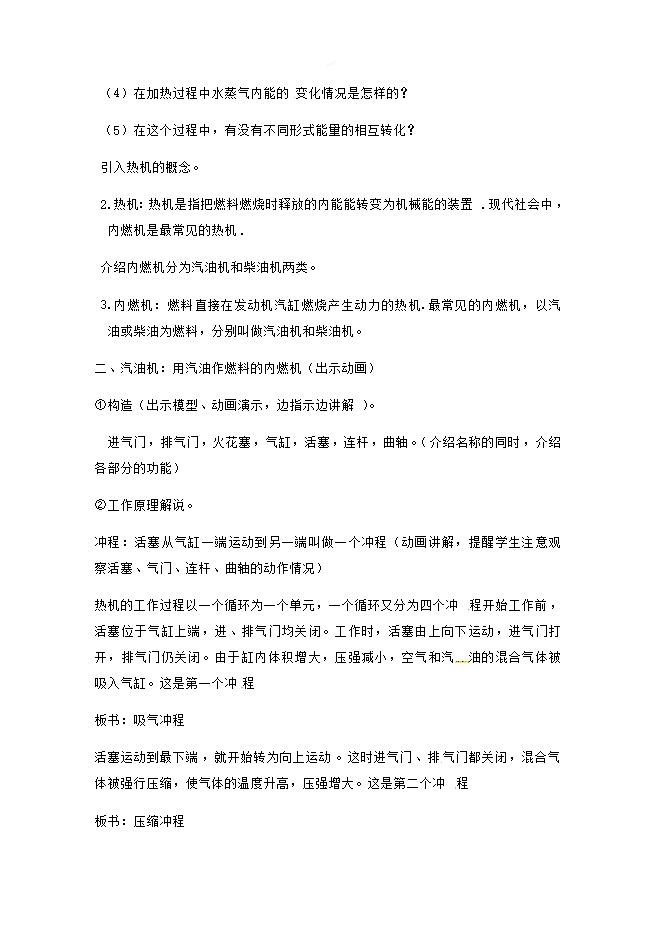 2018-2019北师大版九年级全册物理教案:《10.4热机》(详案附教材分析)