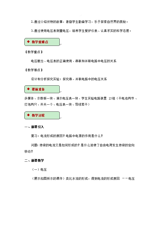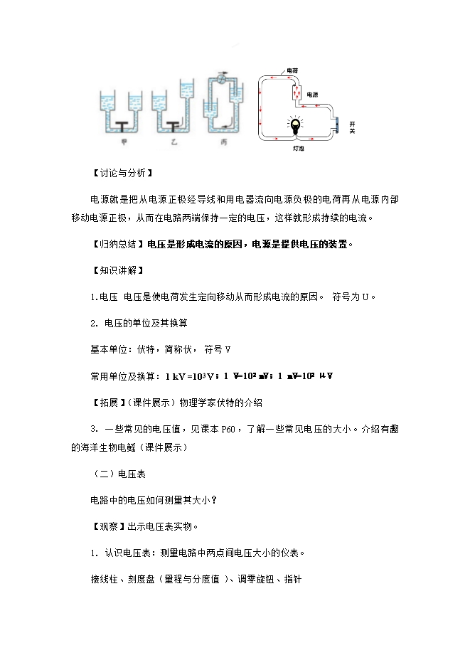 2018-2019北师大版九年级全册物理教案:《11.5电压》(详案附教材分析)