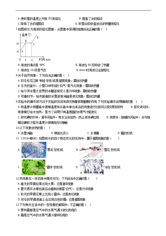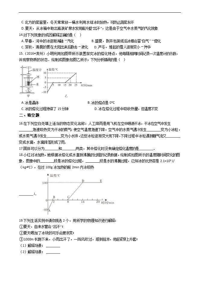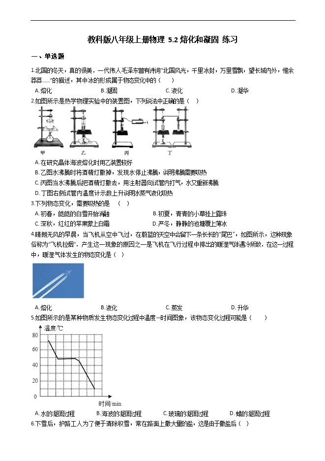 2018-2019教科版八年级上册物理练习题:5.2熔化和凝固(附答案)