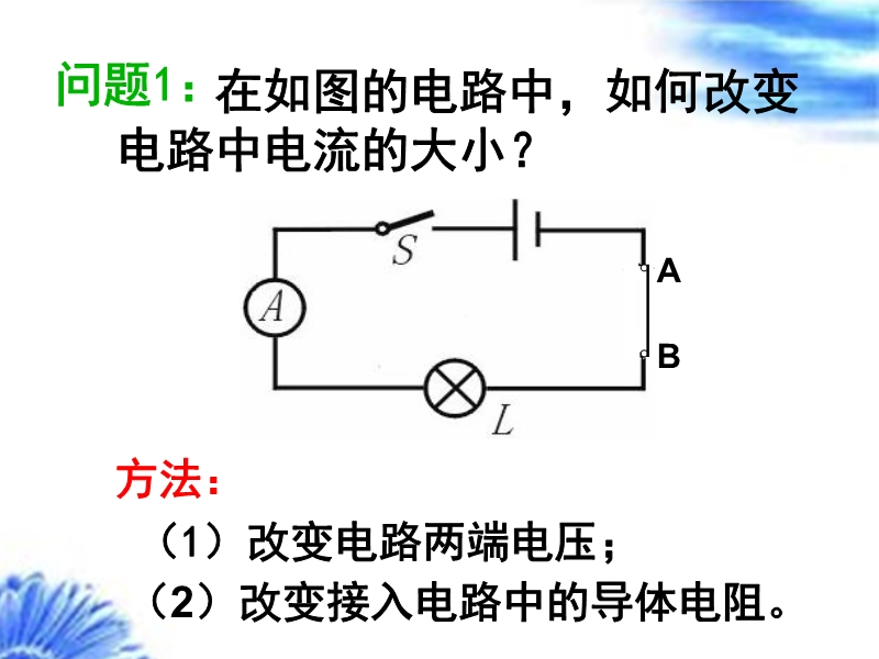 【内容简介】苏科版九年级物理上册《14.2变阻器》PPT课件共有24张幻灯片,由改变电流的方法引出课题,通过铅笔芯改变灯泡的亮度从而引出滑动变阻器的概念,通过实验学习滑动变阻器的使用方法,并拓展了电阻箱和电位器的相关知识。
