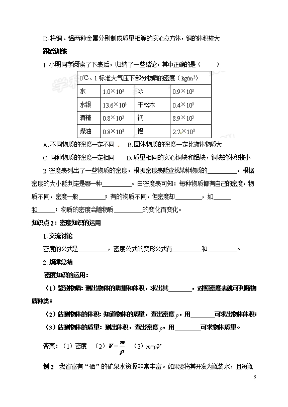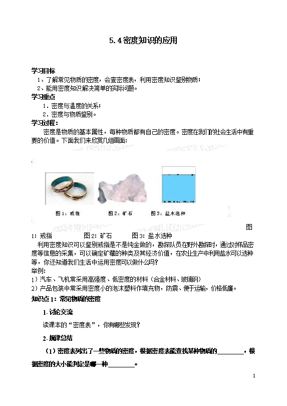 沪科版八年级物理学案与同步练习:5.4密度知识的应用