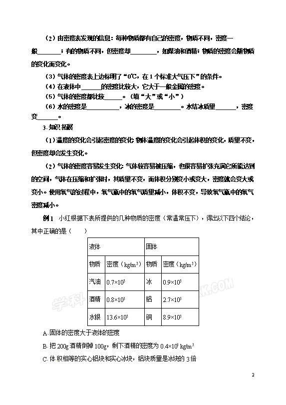 - 9052021秋沪科版物理八年级上册第5章《5.4 密度知识的应用》教案