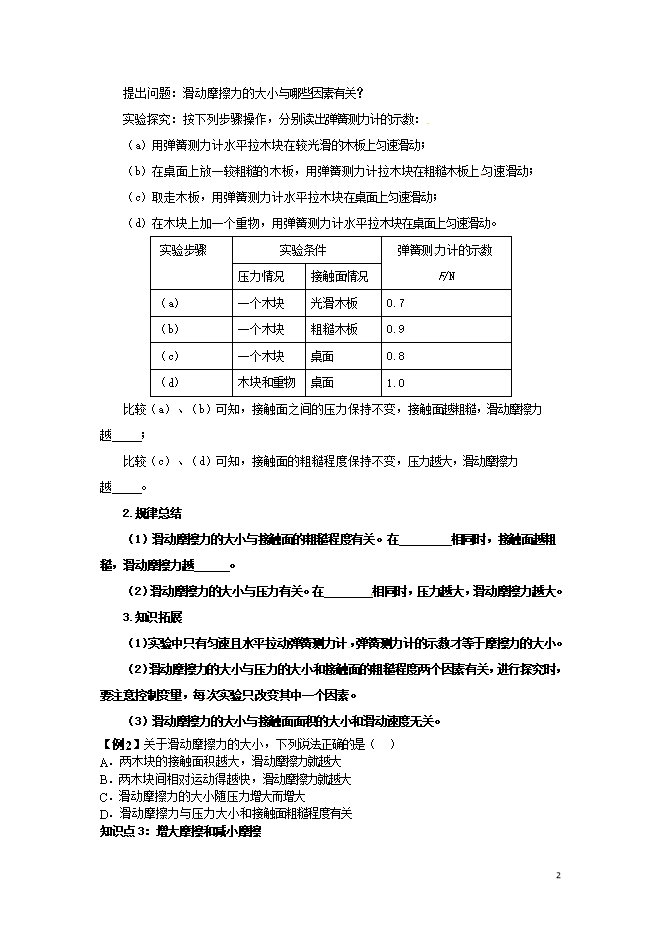- 8952021秋沪科版物理八年级上册第6章《6.5 科学探究:摩擦力》教案