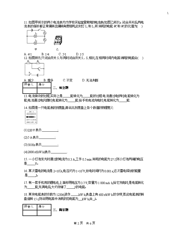 - 449圣陶实验中学生态课堂九年级物理课时学历案:18.1 电能 电功