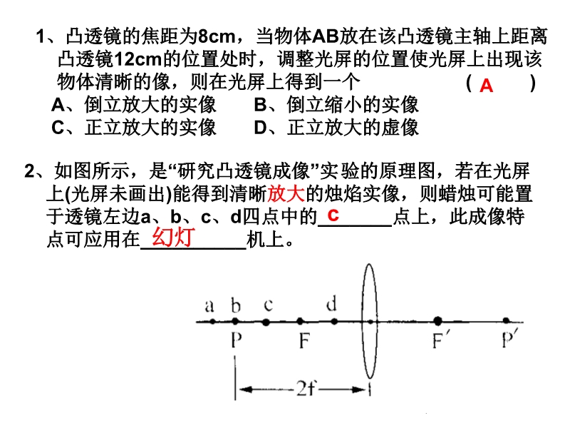 【内容简介】人教版:《第五章 透镜及其应用》PPT专题复习课件,课件19张幻灯片,课件重点复习了透镜,凸透镜成像规律以及眼睛的知识点。