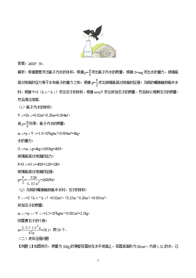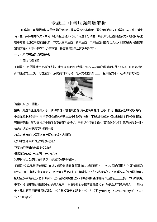 初中物理中考年年考专题:专题二 中考压强问题解析