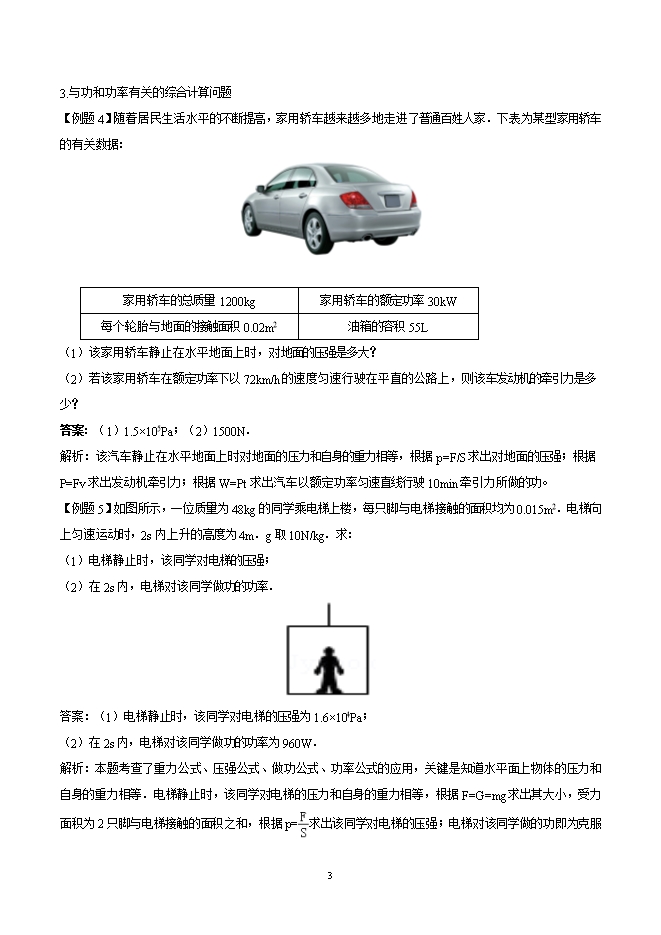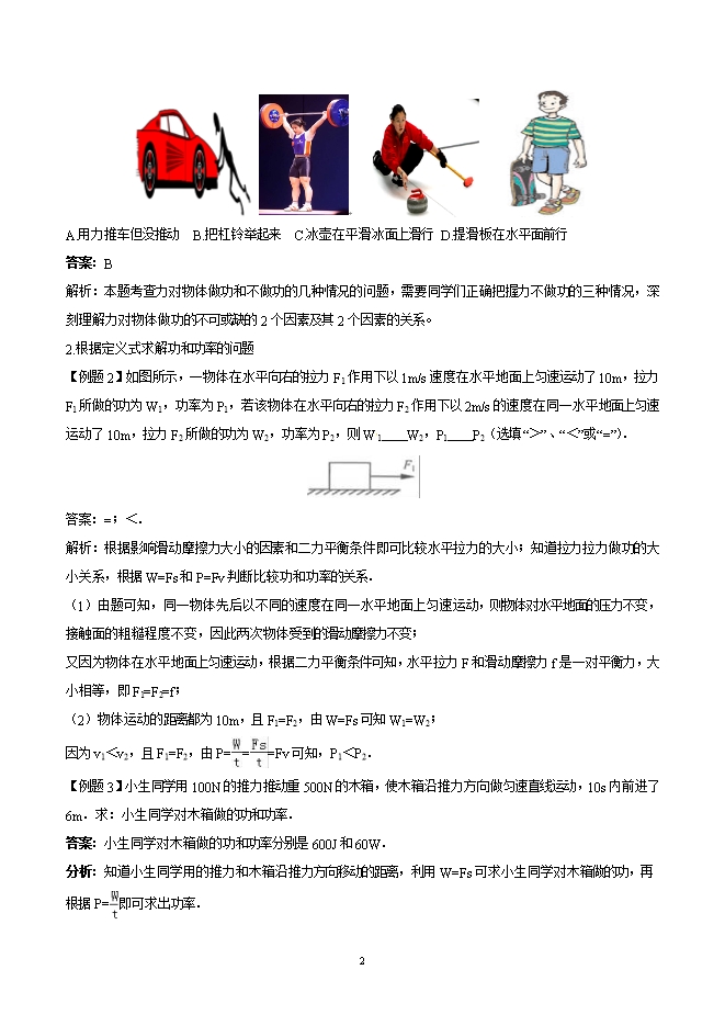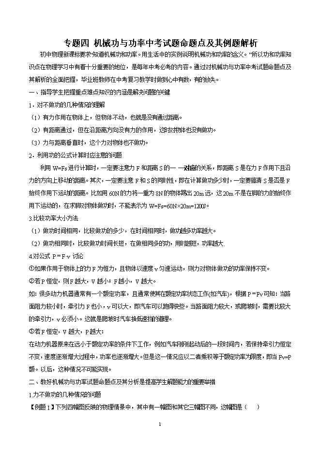 初中物理中考年年考专题:专题四 机械功与功率中考试题命题点及其例题解析