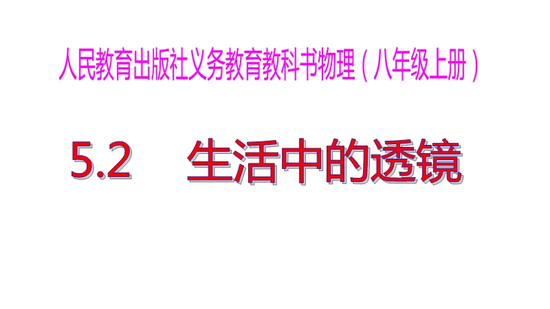 【内容简介】人教版八年级上册《5.2生活中的透镜》PPT课件,课件共42张幻灯片,课件主要引导学生认识透镜在生活中的应用,向学生展示了光学照相机的基本结构和工作原理;引导学生探讨了投影仪的基本结构和工作原理及放大镜的使用、成像特点,总结了实像和虚像的区别等