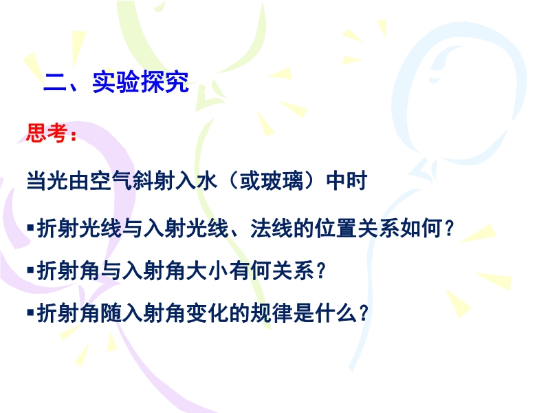 - 574第十三届全国中学物理青年教师大赛初中组一等奖课例12:4.4《光的折射》(内蒙古 佟棱)