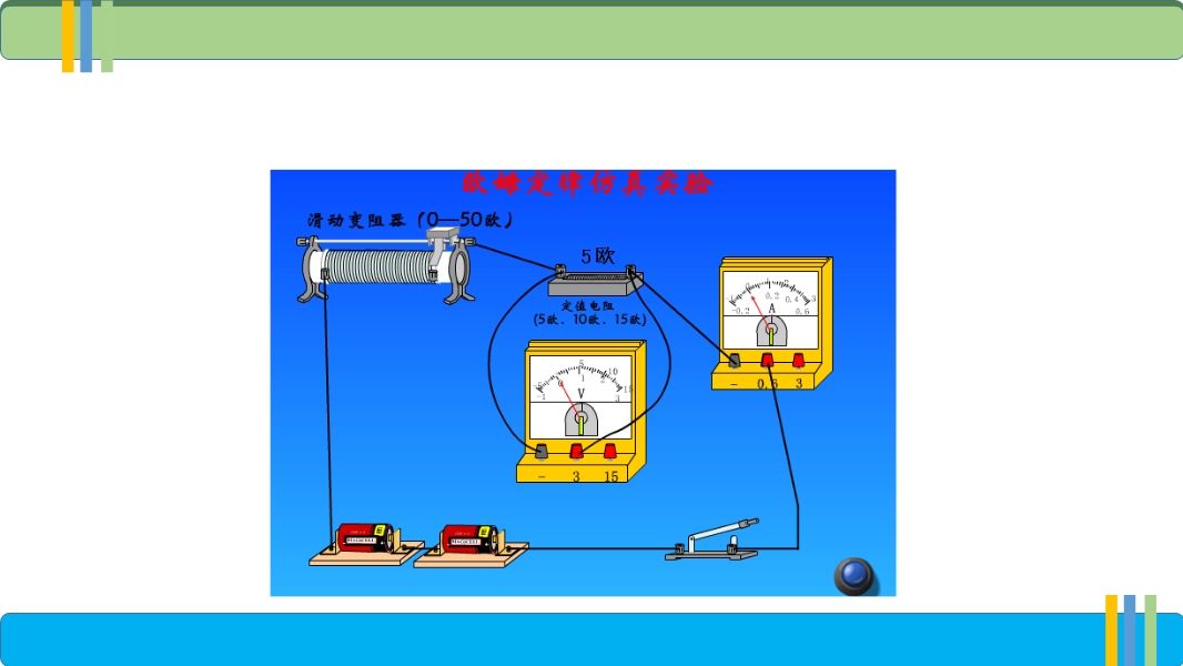 【内容简介】沪粤版九年级上册物理《14.2探究欧姆定律》PPT课件,共有26张幻灯片,并插入了3个flash动画。课件引导学生探究了电流与电压及电阻的关系,让学生经历了科学探究的基本过程,以学生自主探究学习为主。通过探究,引导学生总结了欧姆定律的内容及表达式等。