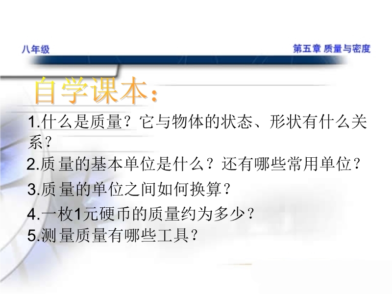 - 432024沪科版物理八年级上学期课件和配套资源:5.1 质量