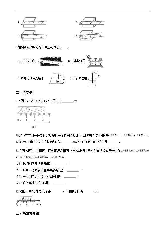 2018-2019沪科版八年级上册物理同步测试题及解析:2.2长度与时间的测量