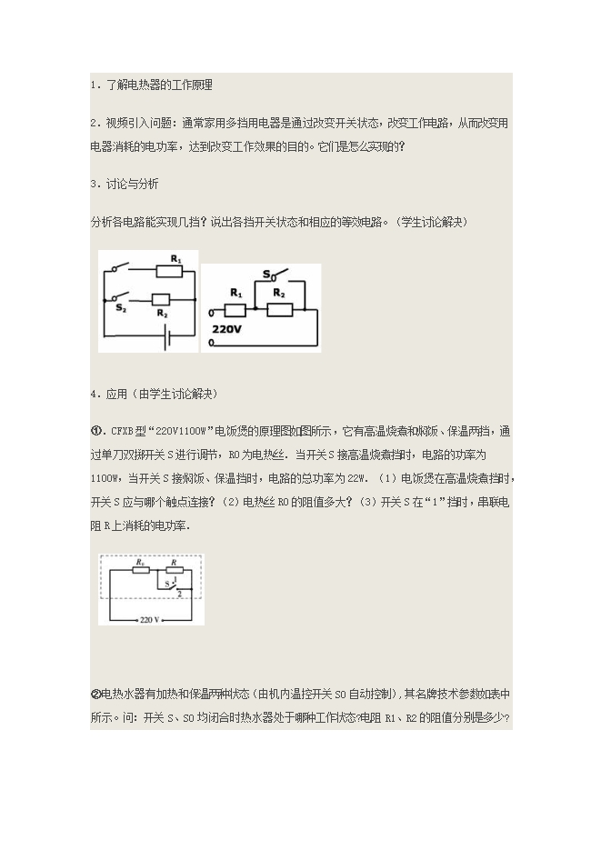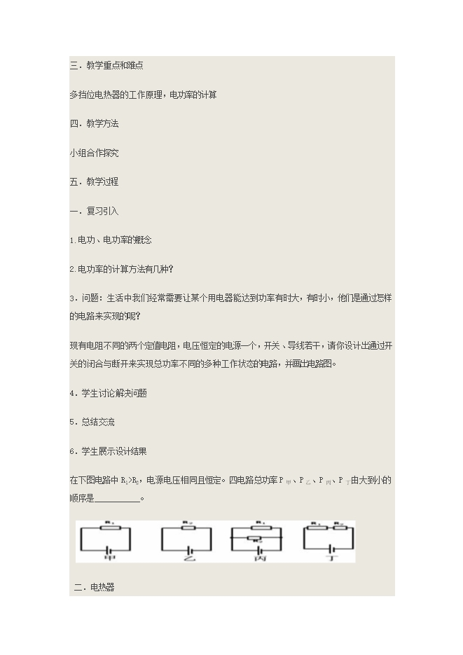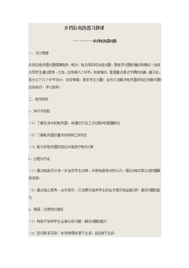 包钢三中人教版:《第十八章 电功率-多挡电热器问题》PPT复习课件+教案