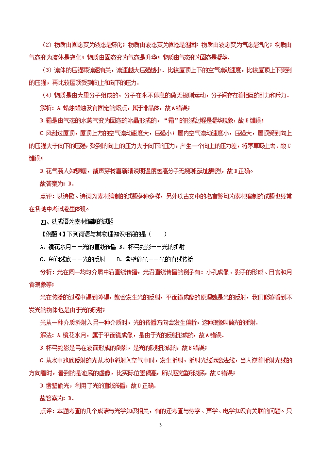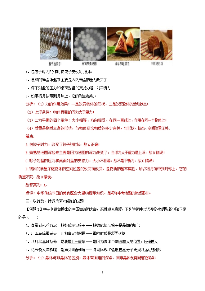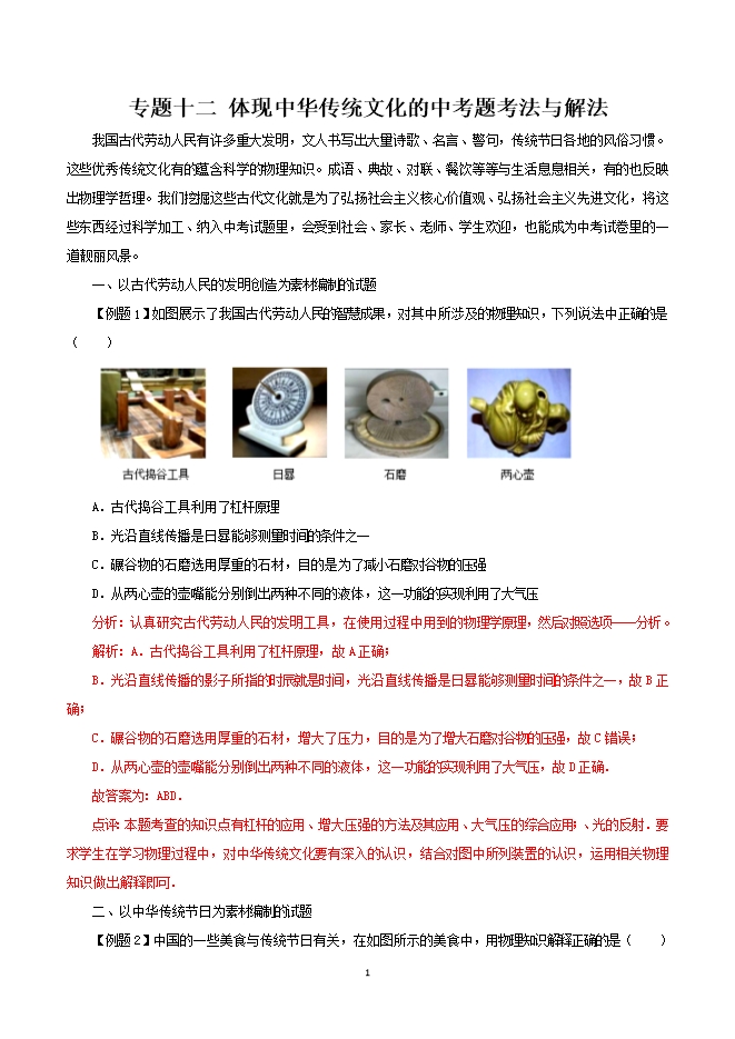 初中物理亮点问题考法与解法的十二个专题:专题十二 体现中华传统文化的中考题考法与解法