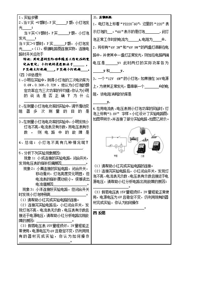 【内容简介】北师大版:《13.3探究:小灯泡的电功率》PPT课件(滦县三中),课件共26张幻灯片,本课件引导学生进一步引导学生认识了额定功率的实际功率的意义,并引导学生讨论了如何测量小灯泡的实际功率和额定功率,进行了实际的测量实验等。