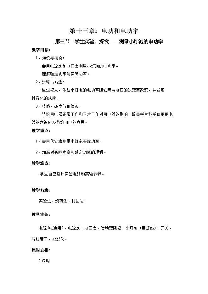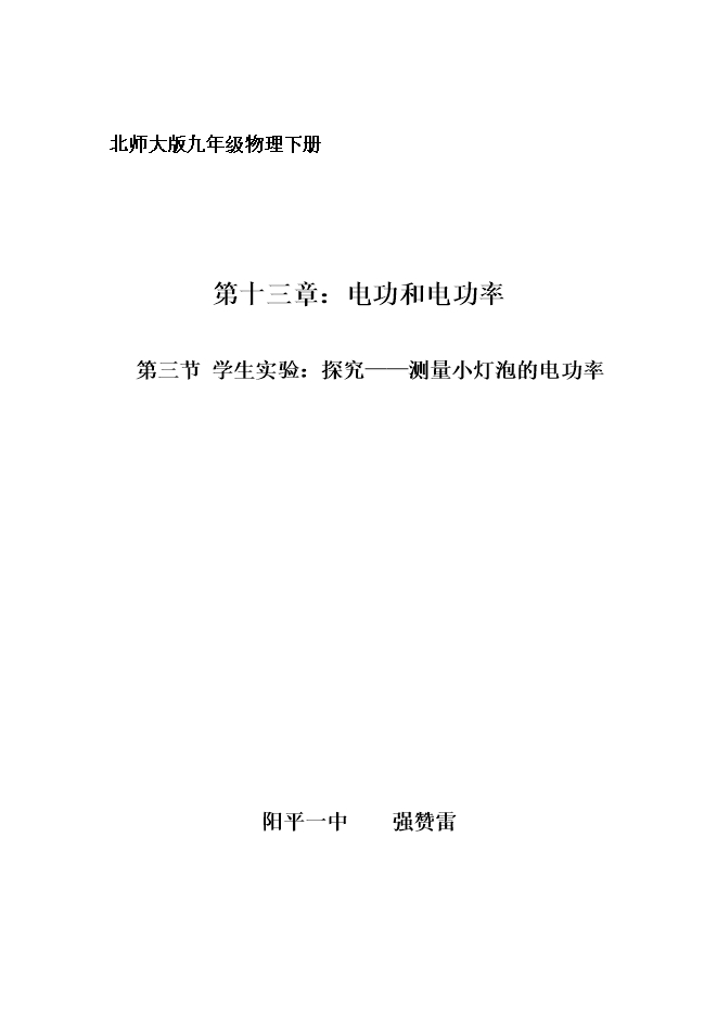 北师大版:《13.3探究:小灯泡的电功率》PPT课件(阳平一中)