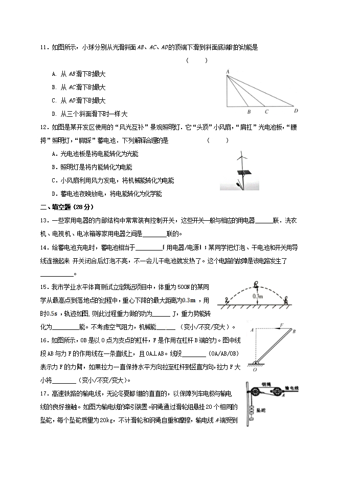 - 1282022年江苏省苏州市素养大赛初中物理模拟试题(附答案)