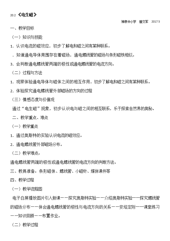 - 2052021秋人教版九年级物理全一册导学案:20.2 电生磁(含答案)