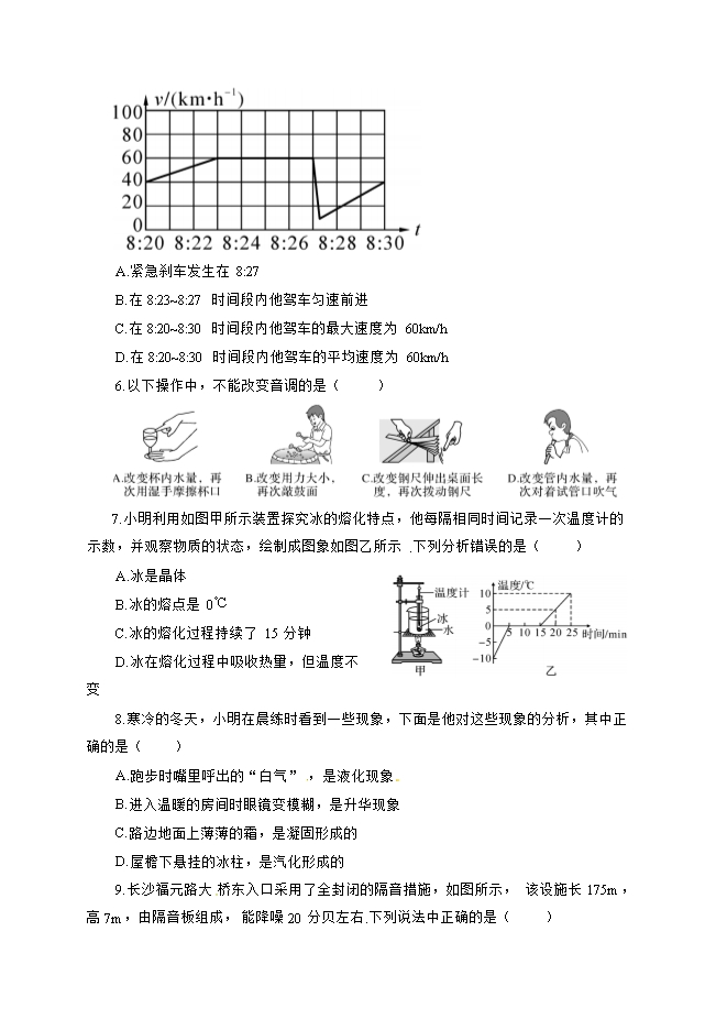 - 1093湖南省郴州市湘南中学2018-2019学年八年级上学期期中考试物理试题及答案