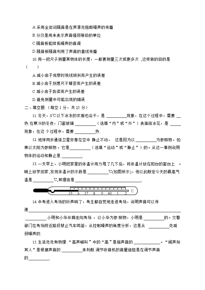 - 969湖南省张家界市慈利县2018-2019学年八年级上学期期中考试物理试题及答案