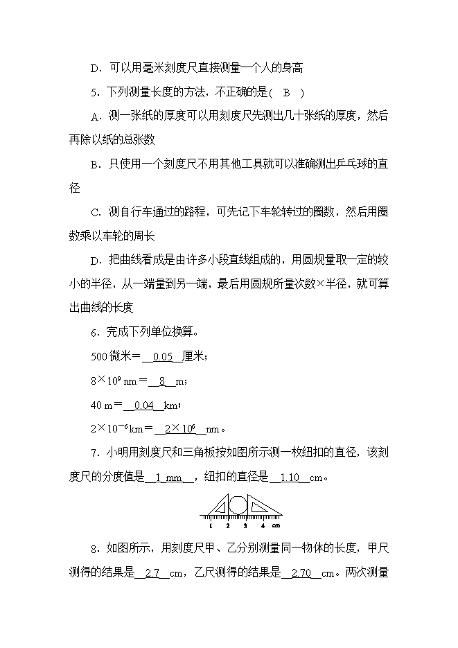 5.下列测量长度的方法,不正确的是( B )