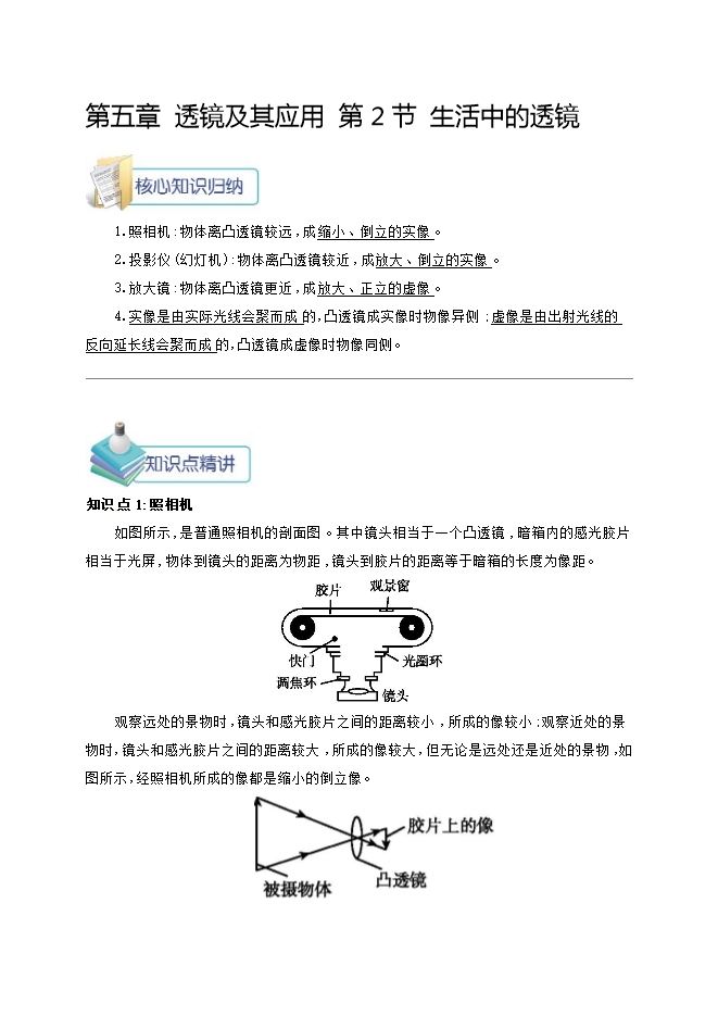 (人教版)2018年秋八年级上学期物理备课资料:第五章 透镜及其应用 第2节 生活中的透镜