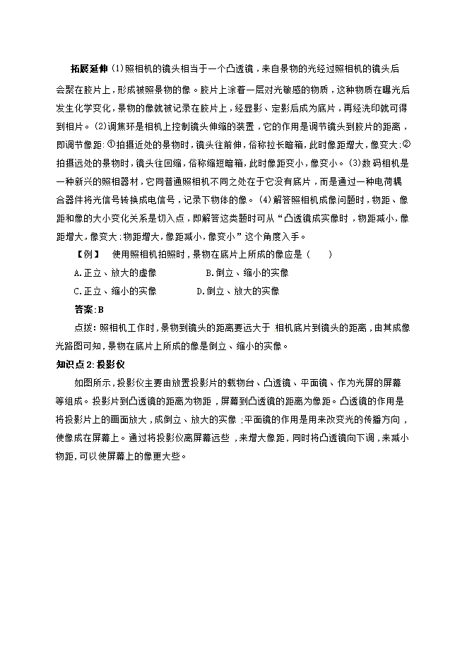 【内容简介】1.照相机:物体离凸透镜较远,成缩小、倒立的实像。