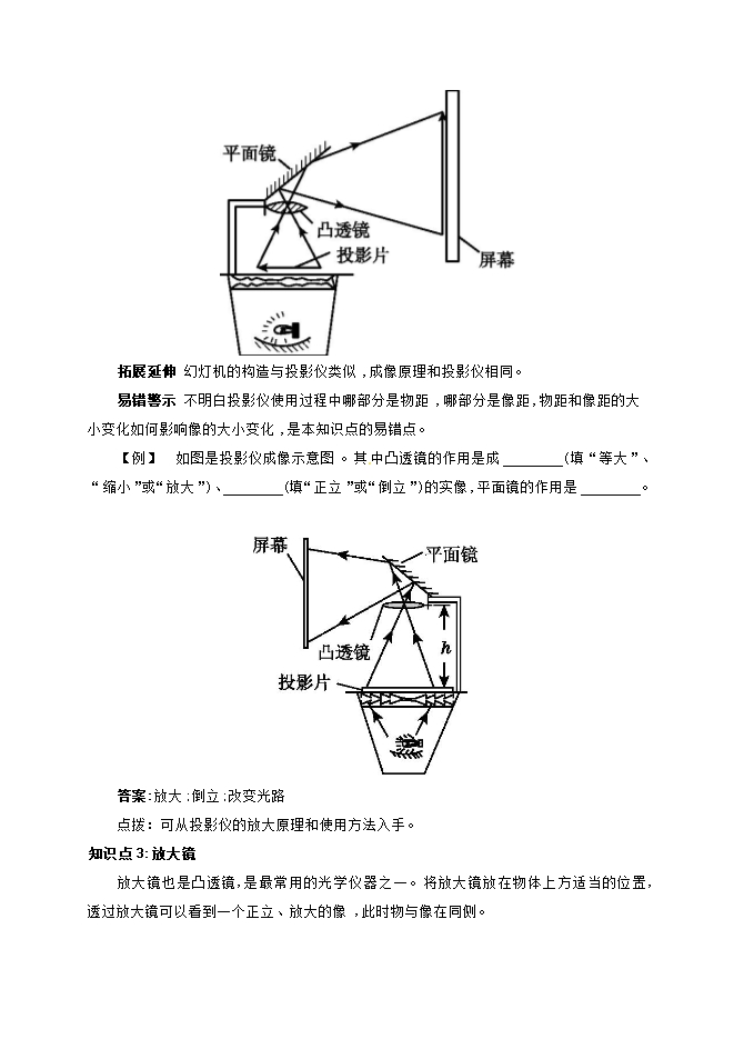 2.投影仪(幻灯机):物体离凸透镜较近,成放大、倒立的实像。