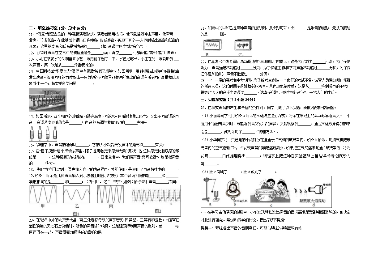 11.“呼麦”是蒙古族的一种高超演唱形式,演唱者运用技巧,使气息猛烈冲击声带,使声带 发声,形成低音。在此基础上调节口腔共鸣,形成高音,实现罕见的一人同时唱出高音和低音的现象,这里的高音和低音是指声音的 (填“音调”“响度”或“音色”)。