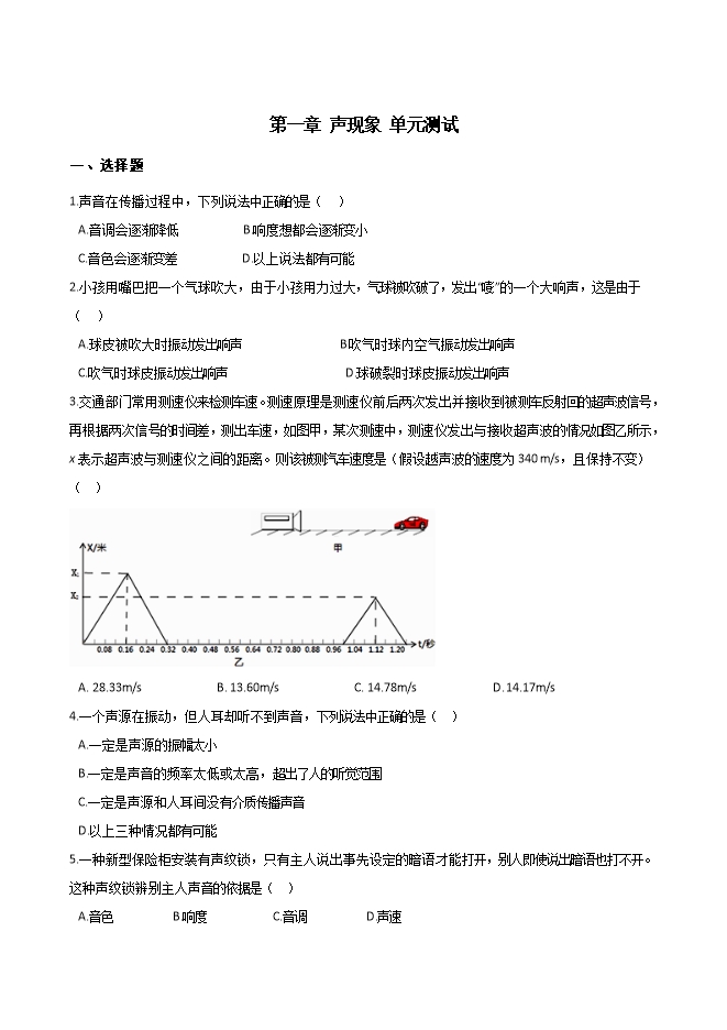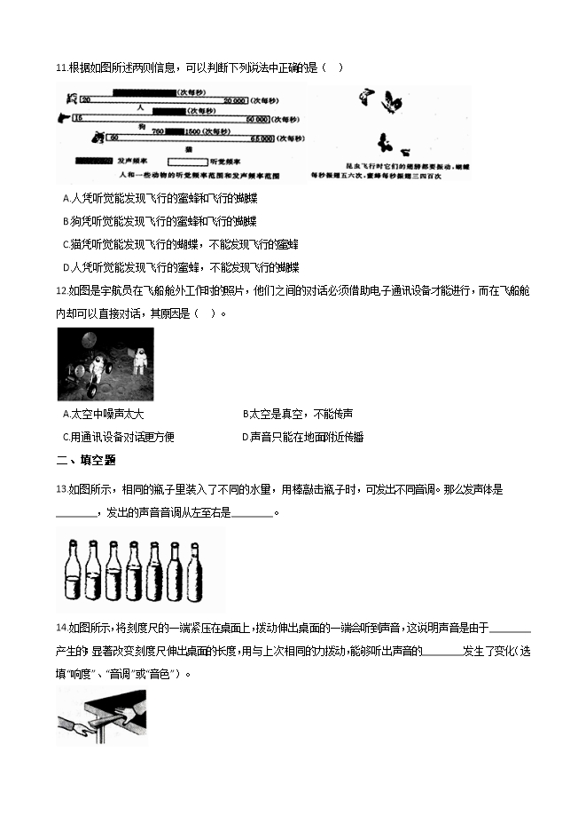 2018-2019学年苏科版八年级上册物理第一章 声现象 单元测试题(含解析)
