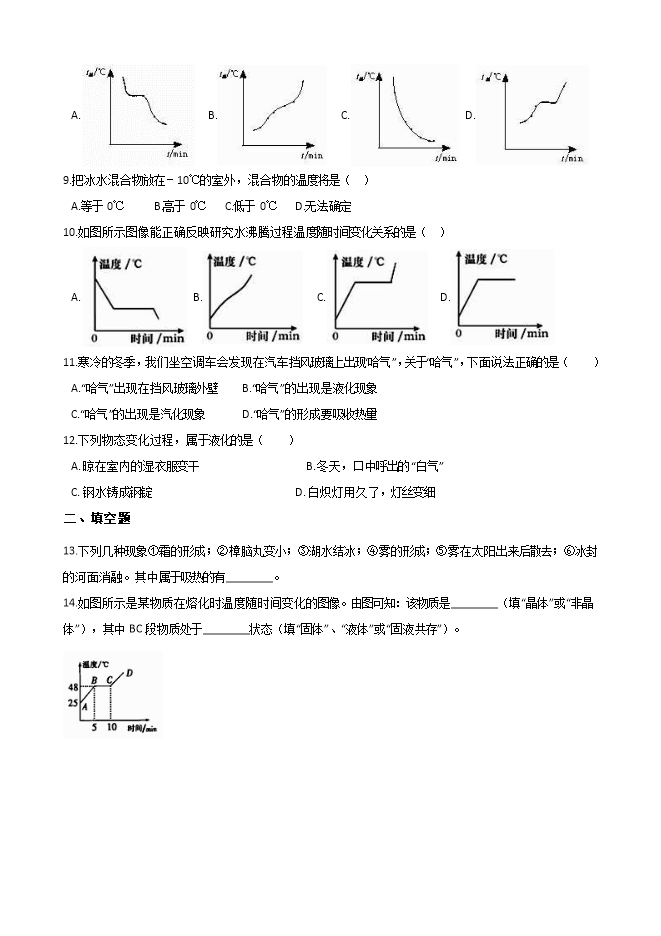 9.把冰水混合物放在-10℃的室外,混合物的温度将是( )