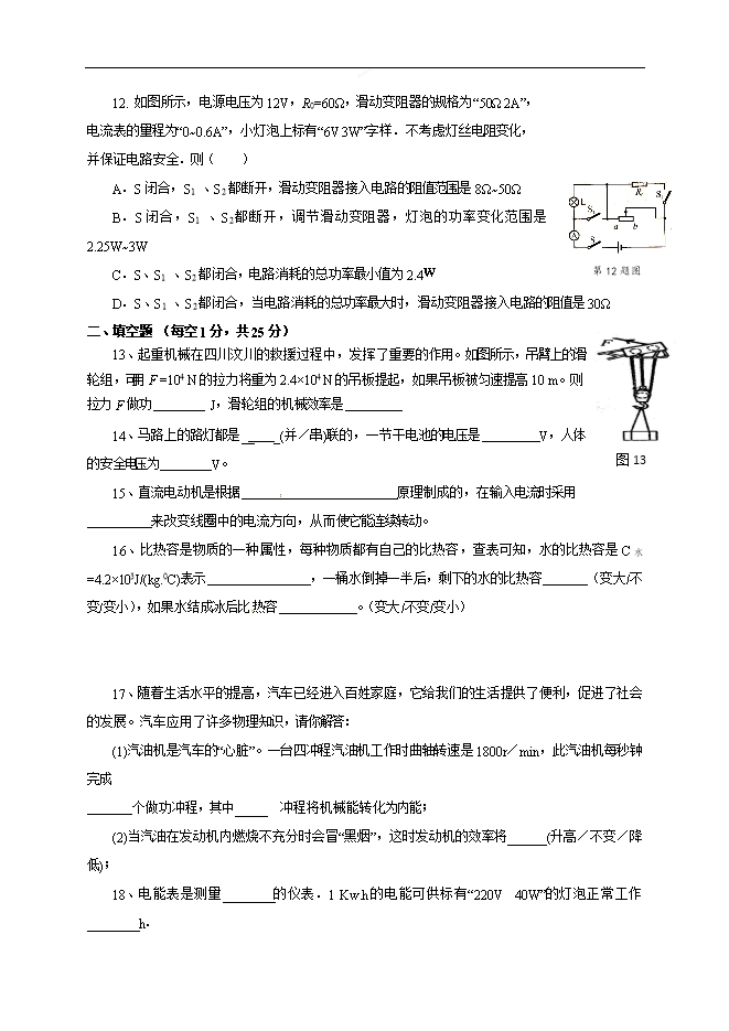 11、如图弹簧测力计下端吊一条形磁铁,当开关S闭合时弹簧测力计示数