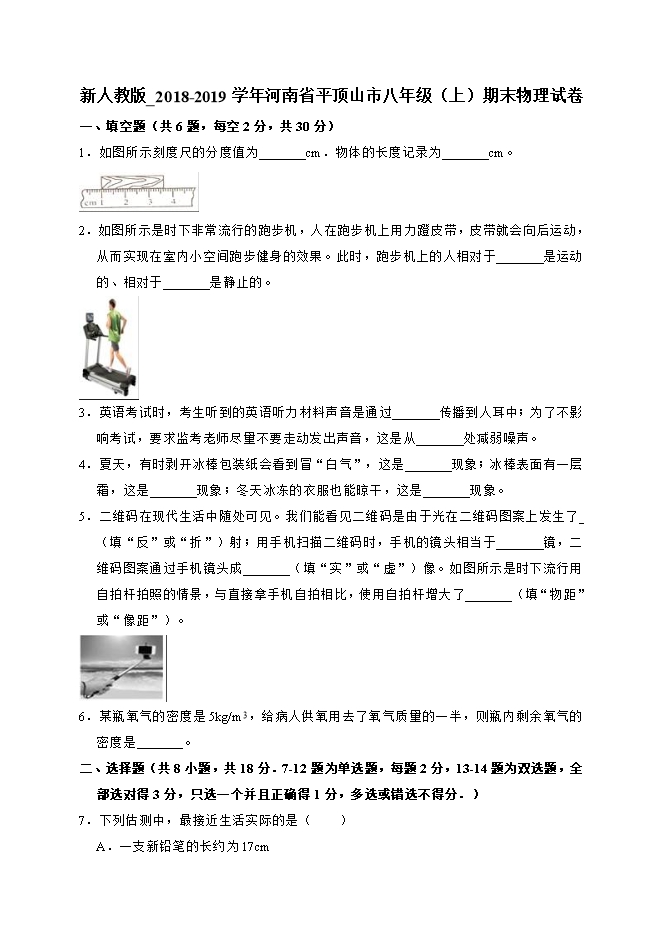 河南省平顶山市2018-2019学年八年级(上)期末物理试卷(解析版)
